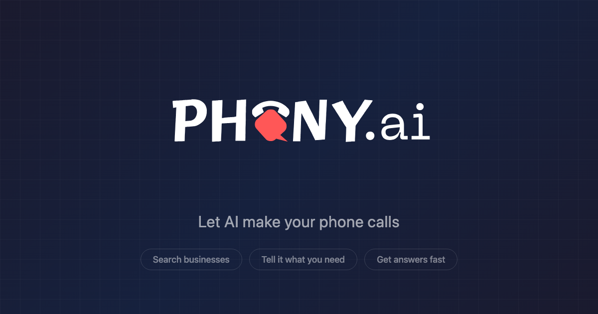 Phony is an AI assistant that makes phone calls on your behalf. If you need to call a business but dread navigating phone trees, being put on hold, or simply do not have time, Phony handles all of it for you.